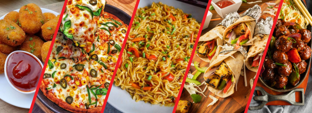 In India, junk food has a special twist. Indian junk food mixes street food flavours with fast food style.